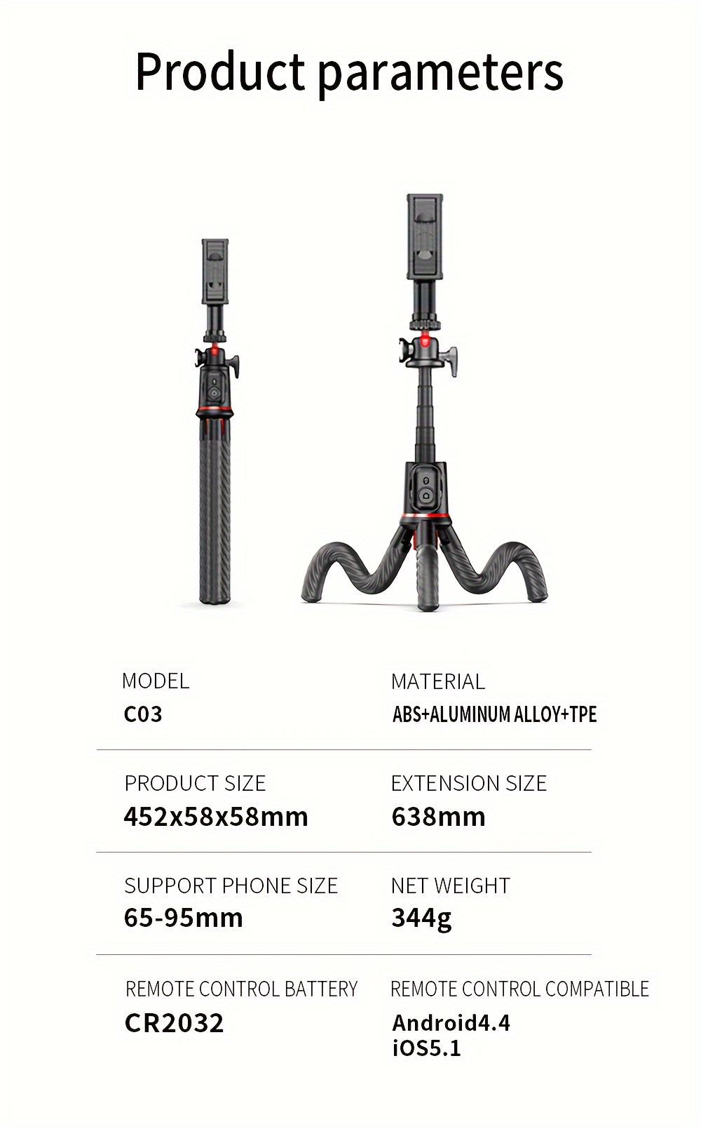 Portable Bendable Phone Tripod w/ Wireless Remote – Adjustable Stand