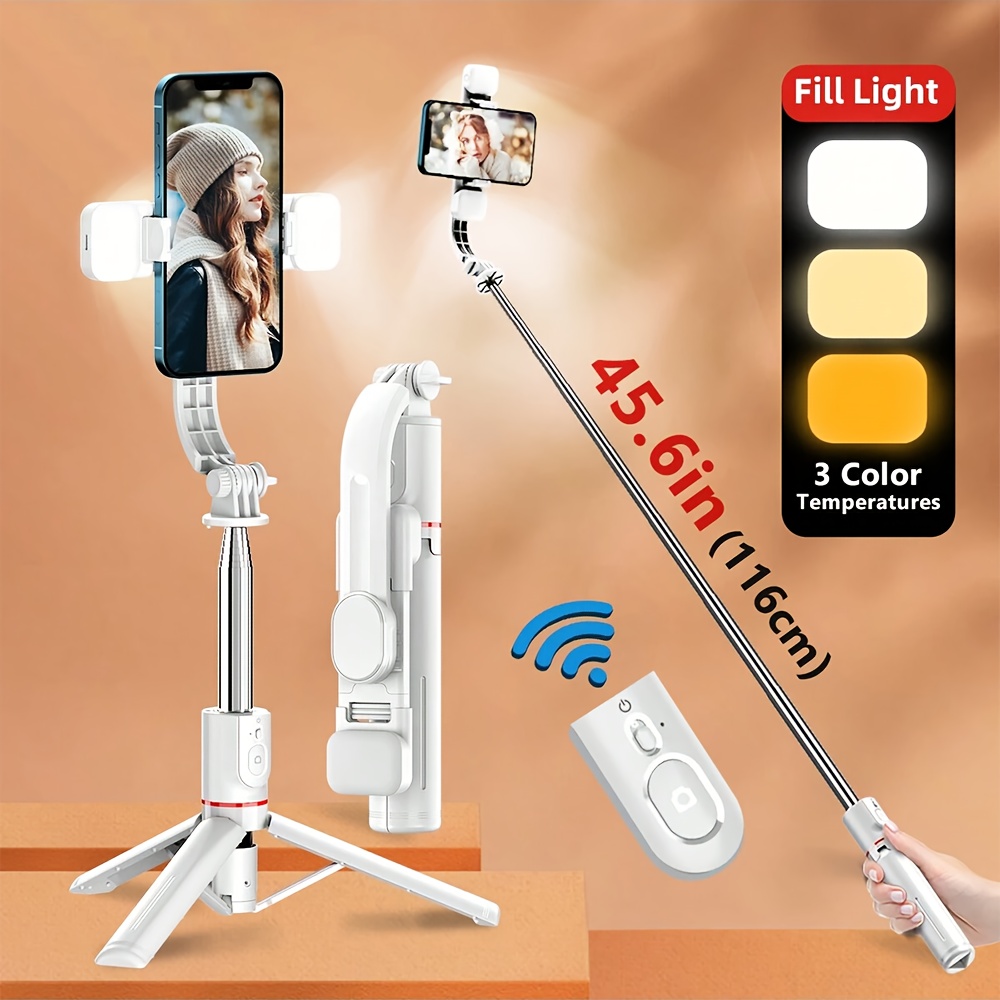 Universal Phone Selfie Stick Stand with Remote, 360° Pan-Tilt, Tripod, Fill Light, ABS Material, Battery Powered, with ≤36V Operating Voltage, for Live Streaming and Photography