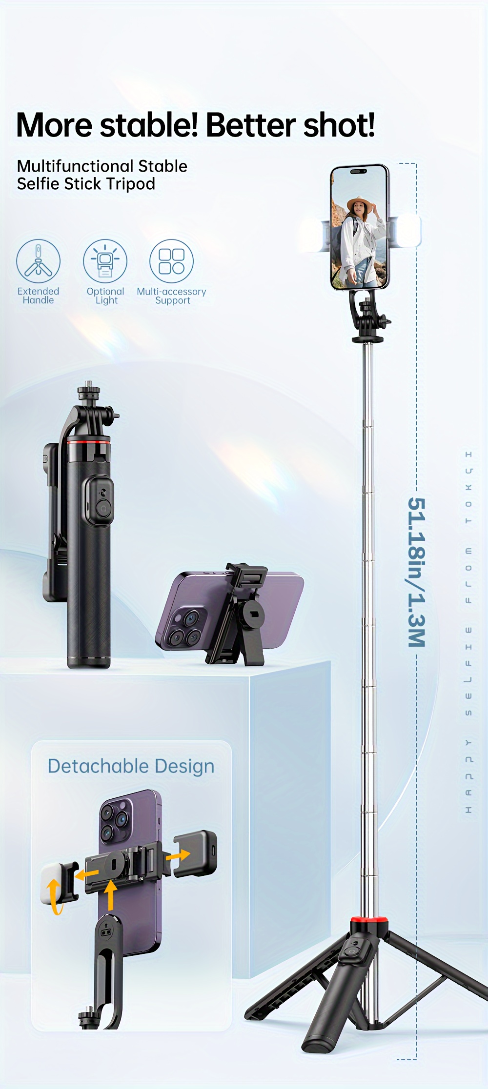 ![[Wireless Selfie Stick Tripod] Wireless Selfie Stick Tripod with Remote Control - 51.18in/130cm ABS Stainless Steel Telescopic Live Broadcast Stand - Height Adjustable, Portable Travel Photography Accessory, Fill Light - Gifts, Surprises](http://stableselfie.com/cdn/shop/files/8405a7b8-2bf8-4b9b-9267-229cf9590e28_cff25003-0f2f-43dd-8382-86cfb124f9f9.jpg?v=1743319111&width=1445)